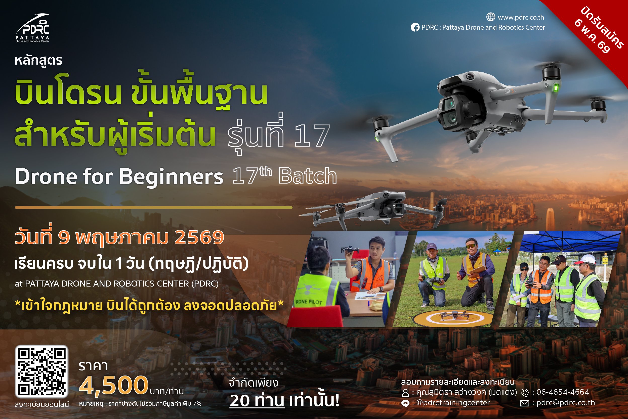 หลักสูตร “บินโดรน ขั้นพื้นฐาน สำหรับผู้เริ่มต้น” ได้พัฒนาระบบการเรียนการสอน มุ่งเน้นความรู้ความเข้าใจเกี่ยวกับกฎหมาย ข้อบังคับ และหลักการเดินอากาศ รวมถึงการใช้ห้วงอากาศ สร้างพื้นฐานความรู้ความเข้าใจที่ถูกต้อง ทั้งภาคทฤษฎีและภาคปฏิบัติ เพื่อให้สามารถใช้งานระบบ UAS (Unmanned Aircraft System) หรือการบินโดรน (Drone) ภายในประเทศให้มีมาตรฐานมีประสิทธิภาพการบินที่ถูกต้องตามกฎหมาย มีความรู้ด้านความปลอดภัยในการบินและการบำรุงรักษาอากาศยานไร้คนขับเบื้องต้น เน้นให้มีทักษะ มีความรู้ ความเข้าใจในการบังคับควบคุมโดรนเบื้องต้นในท่าทางที่กำหนดตามมาตรฐานสากล และดำเนินการบินตามขั้นตอนปฏิบัติพื้นฐาน อีกทั้งมีความรู้เรื่องการใช้ห้วงอากาศร่วมกับผู้อื่น มีความสามารถในการประเมินสภาพอากาศตามหลักอุตุนิยมวิทยาก่อนทำการบิน มีการตรวจสอบตัวเองและผู้ปฏิบัติงานร่วมในด้านความพร้อมสมรรถนะร่างกายก่อนทำการบินโดรน มีความระแวดระวังและการตระหนักรู้เพื่อป้องกันอันตรายจากการบินโดรน มีความรู้เรื่องแผนรับมือต่อสถานการณ์ฉุกเฉินเมื่อเกิดอุบัติเหตุจากโดรน สามารถเข้าใจค่าพารามิเตอร์ของโดรนและตั้งค่าได้อย่างถูกต้อง มีความเข้าใจสมรรถนะของโดรน รวมถึงเทคนิคการบินโดรนให้ปลอดภัย ถูกต้องตามกฎหมายที่สำนักงานการบินพลเรือน (กพท.) กำหนดไว้ และสามารถใช้ UAS Portal โดย CAAT ได้อย่างถูกต้อง