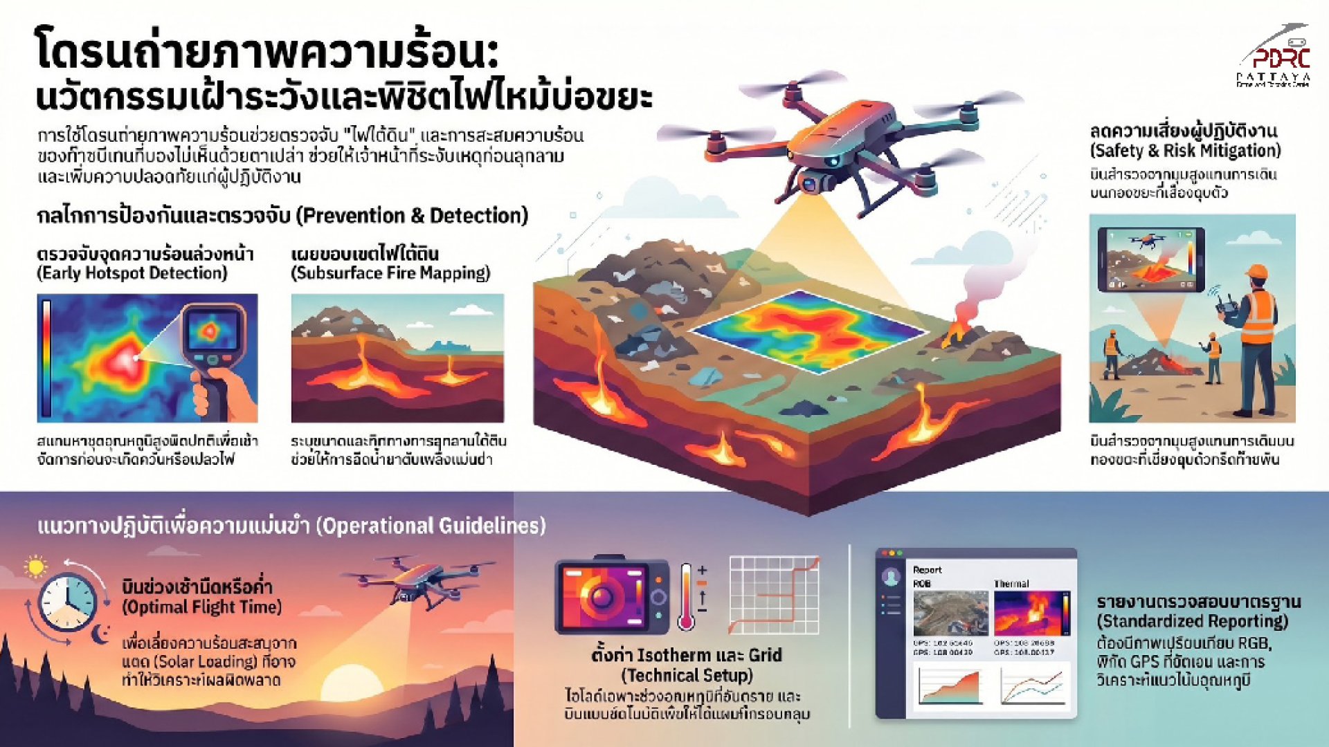 บินโดรน Thermal สแกนจุดร้อนบ่อขยะ