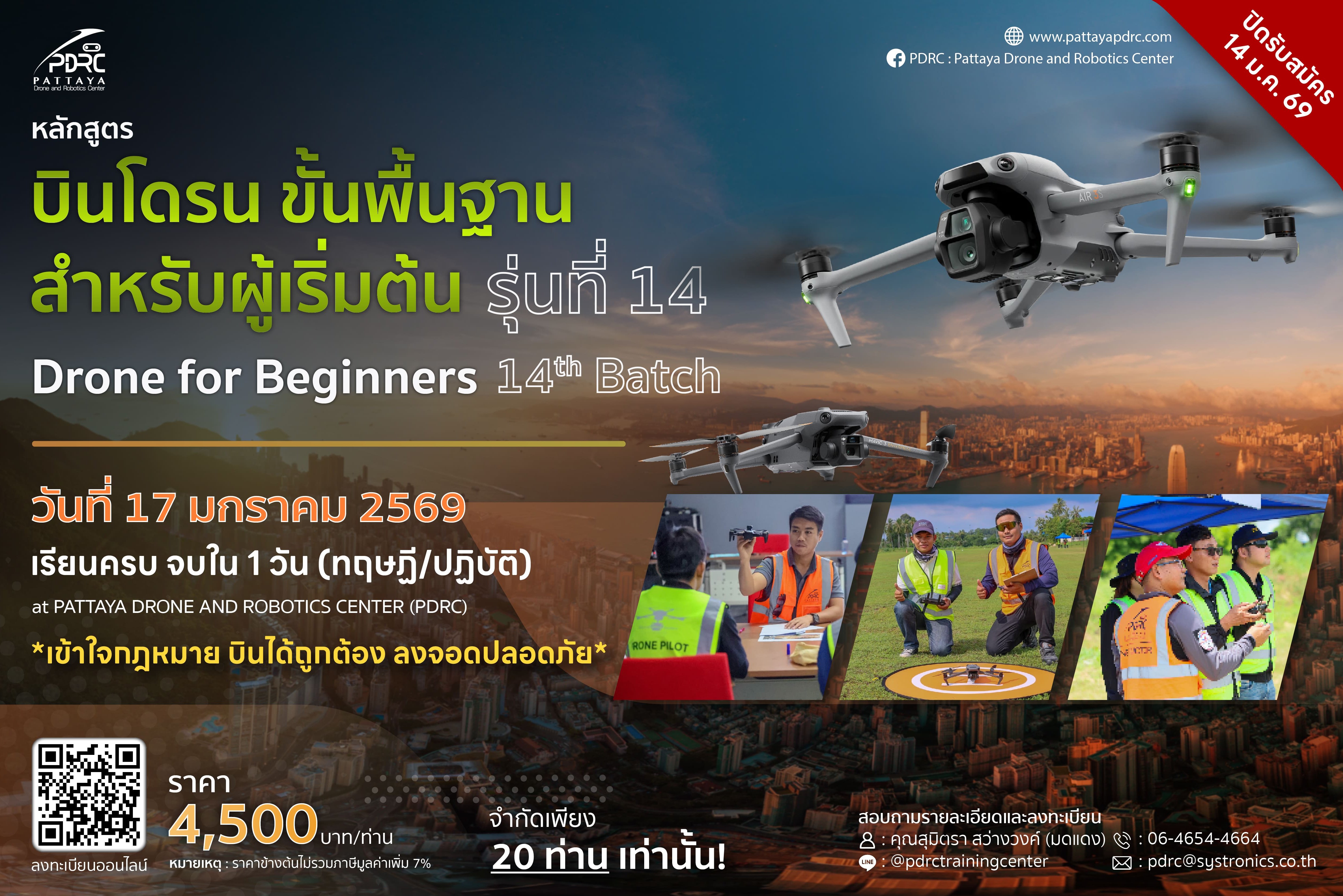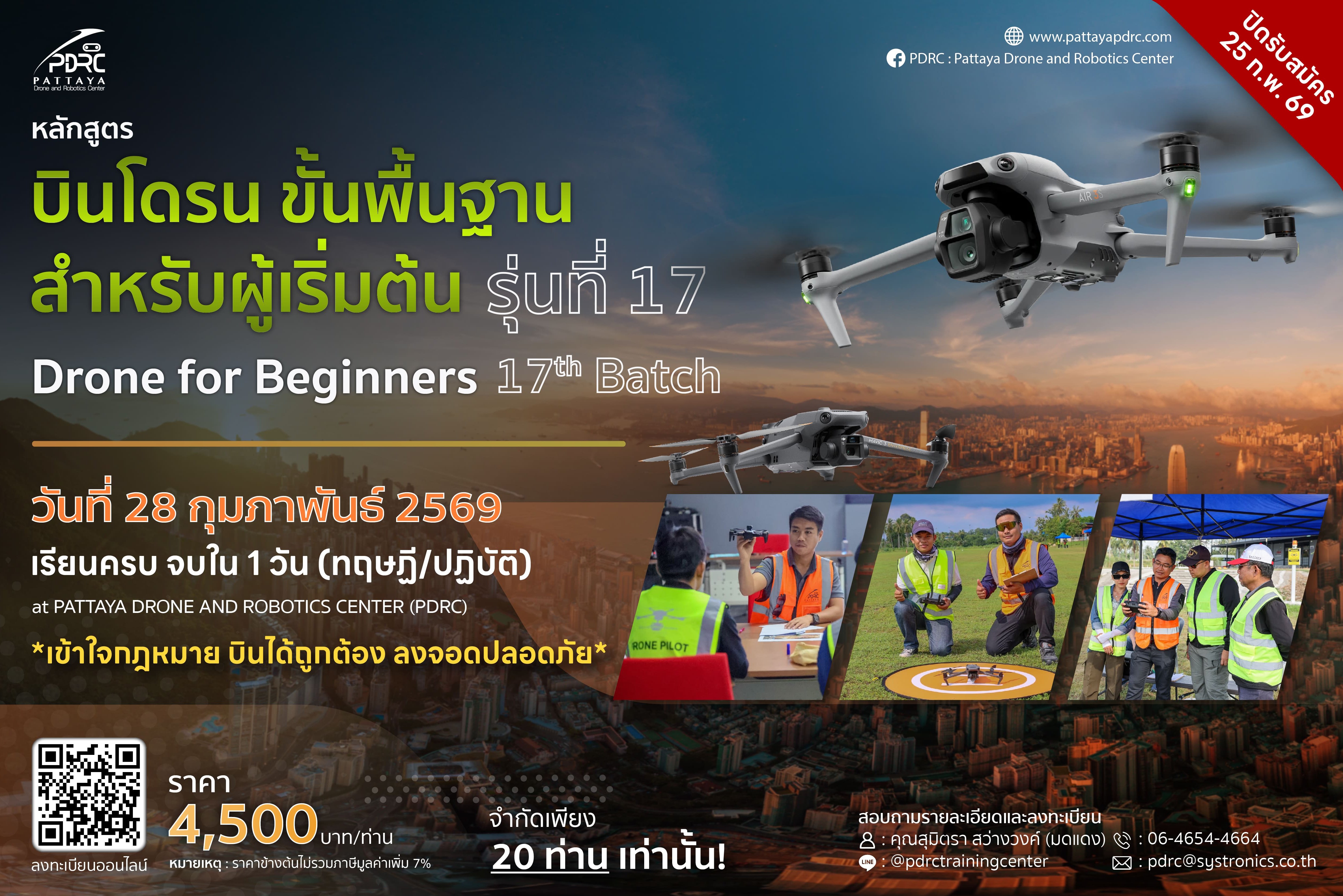 หลักสูตร “บินโดรน ขั้นพื้นฐาน สำหรับผู้เริ่มต้น” ได้พัฒนาระบบการเรียนการสอน มุ่งเน้นความรู้ความเข้าใจเกี่ยวกับกฎหมาย ข้อบังคับ และหลักการเดินอากาศ รวมถึงการใช้ห้วงอากาศ สร้างพื้นฐานความรู้ความเข้าใจที่ถูกต้อง ทั้งภาคทฤษฎีและภาคปฏิบัติ เพื่อให้สามารถใช้งานระบบ UAS (Unmanned Aircraft System) หรือการบินโดรน (Drone) ภายในประเทศให้มีมาตรฐานมีประสิทธิภาพการบินที่ถูกต้องตามกฎหมาย มีความรู้ด้านความปลอดภัยในการบินและการบำรุงรักษาอากาศยานไร้คนขับเบื้องต้น เน้นให้มีทักษะ มีความรู้ ความเข้าใจในการบังคับควบคุมโดรนเบื้องต้นในท่าทางที่กำหนดตามมาตรฐานสากล และดำเนินการบินตามขั้นตอนปฏิบัติพื้นฐาน อีกทั้งมีความรู้เรื่องการใช้ห้วงอากาศร่วมกับผู้อื่น มีความสามารถในการประเมินสภาพอากาศตามหลักอุตุนิยมวิทยาก่อนทำการบิน มีการตรวจสอบตัวเองและผู้ปฏิบัติงานร่วมในด้านความพร้อมสมรรถนะร่างกายก่อนทำการบินโดรน มีความระแวดระวังและการตระหนักรู้เพื่อป้องกันอันตรายจากการบินโดรน มีความรู้เรื่องแผนรับมือต่อสถานการณ์ฉุกเฉินเมื่อเกิดอุบัติเหตุจากโดรน สามารถเข้าใจค่าพารามิเตอร์ของโดรนและตั้งค่าได้อย่างถูกต้อง มีความเข้าใจสมรรถนะของโดรน รวมถึงเทคนิคการบินโดรนให้ปลอดภัย ถูกต้องตามกฎหมายที่สำนักงานการบินพลเรือน (กพท.) กำหนดไว้ และสามารถใช้ UAS Portal โดย CAAT ได้อย่างถูกต้อง